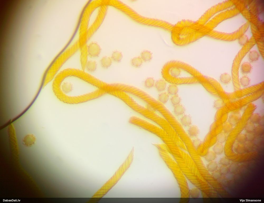 Sporas izskatās ļoti gaišas, varbūt nenobriedušas. Es laikam pēc kāda laiciņa mēģinātu vēlreiz mikroskopēt. Tajā pašā laikā sporu izmēri priekš T.contorta ir pamazi (ja tipiski ir 11-14 mkm, te ir knapi 11 mkm)