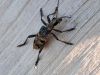 Jāredz tuvāk (kaut vai izkadrēts šis pats attēls) - varbūt tumšā eļļasvabole (Meloe proscarabaeus)