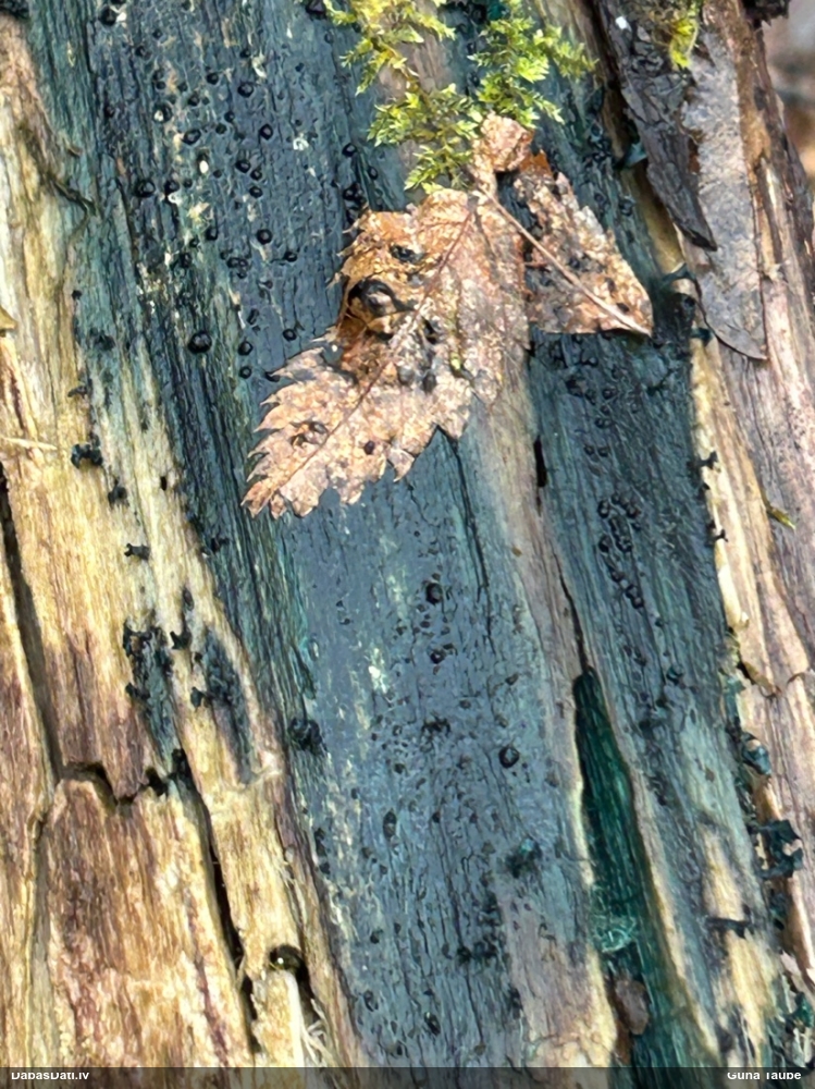Raivo, nebūs Chaenotheca furfuracea, bet gan C.brachypoda (dabisku mežu indikatorsuga). C.furfuracea ir ar izteiktu laponi, daudz lielāki aķ un košāk zaļa krāsa