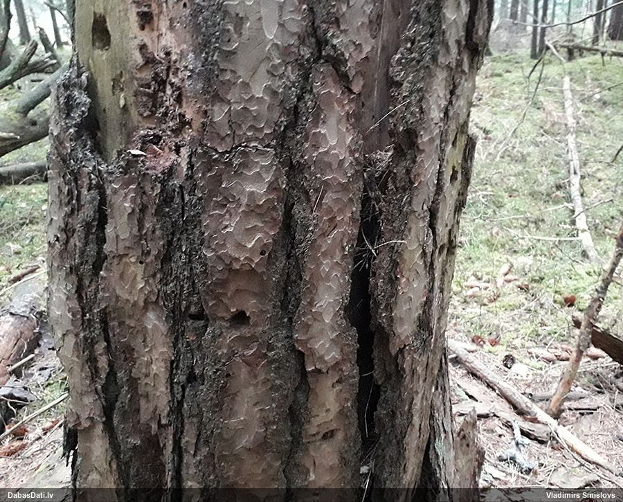 Jā, zem mizas uz nokaltušas priedes.