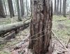 Satrūdējusi kritala mežā, nav dēļi. Iespējams, egle, jauktu koku mežs.