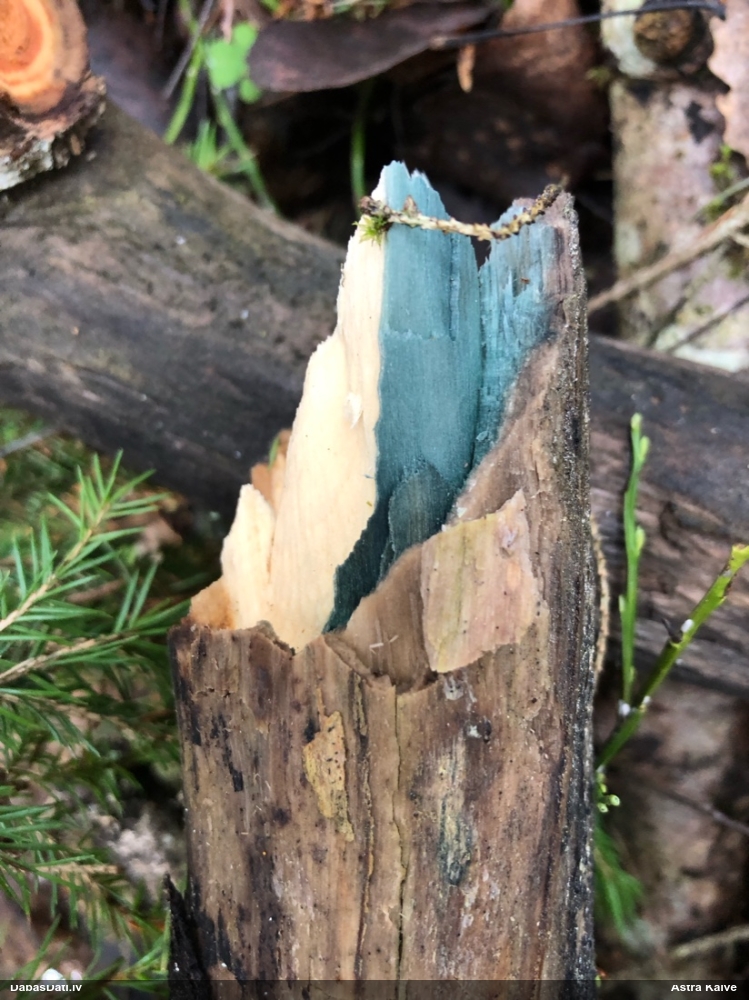 Satrūdējusi kritala mežā, nav dēļi. Iespējams, egle, jauktu koku mežs.
