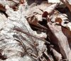 Satrūdējusi kritala mežā, nav dēļi. Iespējams, egle, jauktu koku mežs.