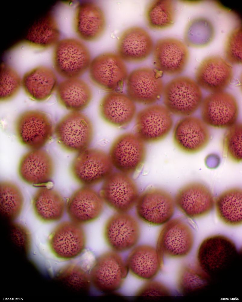 Sporas izskatās ļoti gaišas, varbūt nenobriedušas. Es laikam pēc kāda laiciņa mēģinātu vēlreiz mikroskopēt. Tajā pašā laikā sporu izmēri priekš T.contorta ir pamazi (ja tipiski ir 11-14 mkm, te ir knapi 11 mkm)