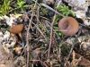 Man pēkšņi radās ideja - vai tur bija nu ļoti mitrs mikroklimats, egle ar melnalksni? Hipotētiski tādas dzeltenas var būt Diachea muscorum. Te bilde ir mazliet līdzīga: https://fr.wikipedia.org/wiki/Fichier:Craterium_muscorum,_Trawscoed,_North_Wales,_Aug_2016_-_Flickr_-_janetgraham84.jpg