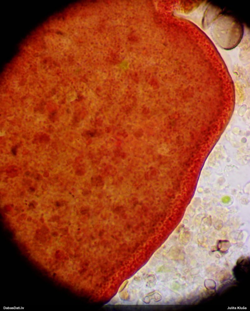 Šis man pašai sanāca pārsteigums. Ievācu paraugu ar domu "varbūt tur ir gļotsēne", dodot varbūtību apmēram pusprocentu, ka ir. Bet no mikroskopijas starp galīgi vecām sporām izdevās atrast ne tikai dažas labas, bet, galvenais, arī perfektus kapilīcija fragmentus, no kura suga, vēl kopā ar sporu pazīmēm, nosakāma nešaubīgi.
