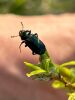 Jāredz tuvāk (kaut vai izkadrēts šis pats attēls) - varbūt tumšā eļļasvabole (Meloe proscarabaeus)