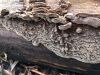 Satrūdējusi kritala mežā, nav dēļi. Iespējams, egle, jauktu koku mežs.