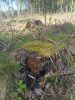 Satrūdējusi kritala mežā, nav dēļi. Iespējams, egle, jauktu koku mežs.