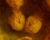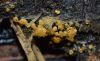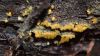 Man pēkšņi radās ideja - vai tur bija nu ļoti mitrs mikroklimats, egle ar melnalksni? Hipotētiski tādas dzeltenas var būt Diachea muscorum. Te bilde ir mazliet līdzīga: https://fr.wikipedia.org/wiki/Fichier:Craterium_muscorum,_Trawscoed,_North_Wales,_Aug_2016_-_Flickr_-_janetgraham84.jpg