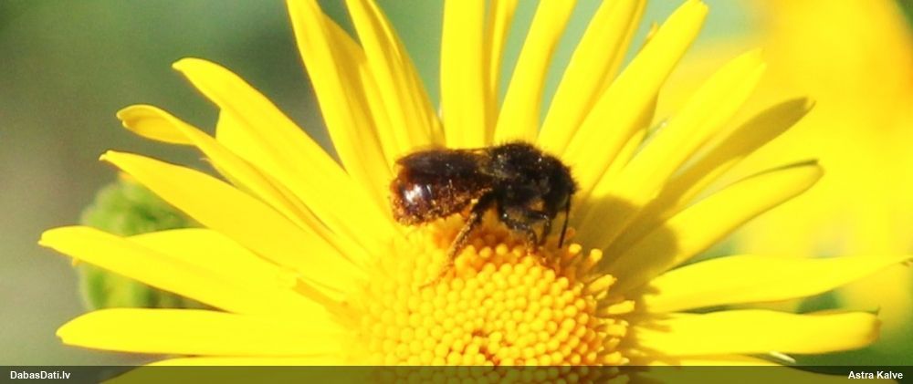Jāredz tuvāk (kaut vai izkadrēts šis pats attēls) - varbūt tumšā eļļasvabole (Meloe proscarabaeus)