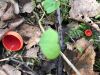 Man pēkšņi radās ideja - vai tur bija nu ļoti mitrs mikroklimats, egle ar melnalksni? Hipotētiski tādas dzeltenas var būt Diachea muscorum. Te bilde ir mazliet līdzīga: https://fr.wikipedia.org/wiki/Fichier:Craterium_muscorum,_Trawscoed,_North_Wales,_Aug_2016_-_Flickr_-_janetgraham84.jpg