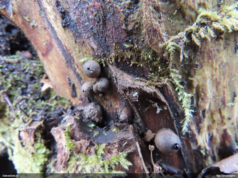 Cukurīte (Didymium) vai pumpurīte (Physarum)? Man galviņas virsma šķiet vairāk kā cukurītei, bet uz sēnes .. pieredze ar pumpurītēm.