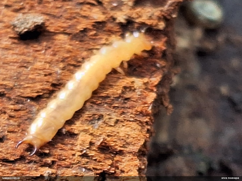 Nu jā, 3. attēlā var saskatīt galvas priekšā arī tādu kā 'āmurveida' izaugumu, kas raksturīgs Xylophagus. Kāpuri arī dzīvo zem mizas - bieži tieši zem nokaltušu priežu mizas.