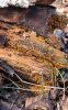 Satrūdējusi kritala mežā, nav dēļi. Iespējams, egle, jauktu koku mežs.