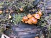 Man pēkšņi radās ideja - vai tur bija nu ļoti mitrs mikroklimats, egle ar melnalksni? Hipotētiski tādas dzeltenas var būt Diachea muscorum. Te bilde ir mazliet līdzīga: https://fr.wikipedia.org/wiki/Fichier:Craterium_muscorum,_Trawscoed,_North_Wales,_Aug_2016_-_Flickr_-_janetgraham84.jpg