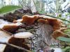 Satrūdējusi kritala mežā, nav dēļi. Iespējams, egle, jauktu koku mežs.