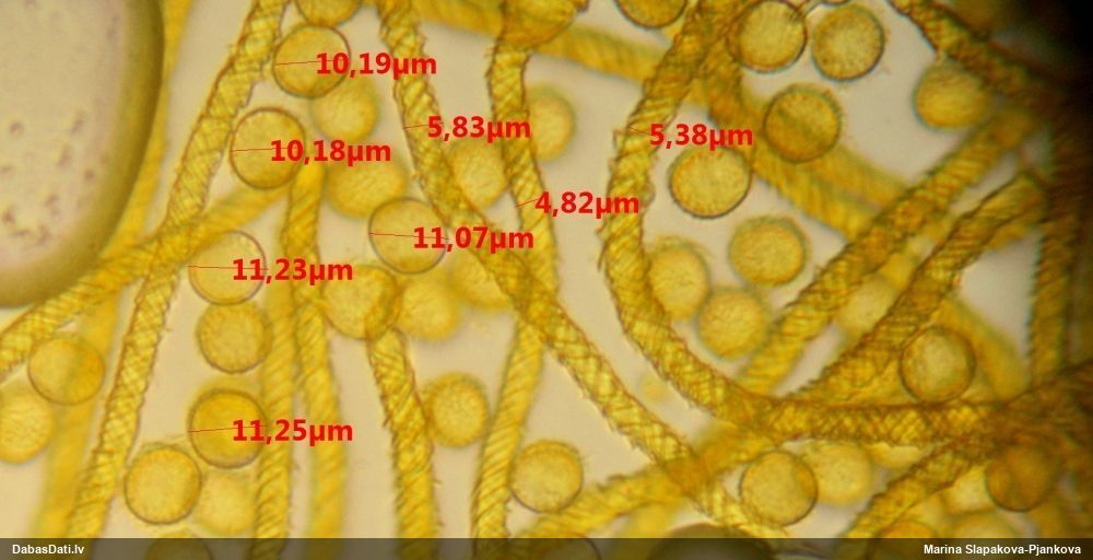 Šis man pašai sanāca pārsteigums. Ievācu paraugu ar domu "varbūt tur ir gļotsēne", dodot varbūtību apmēram pusprocentu, ka ir. Bet no mikroskopijas starp galīgi vecām sporām izdevās atrast ne tikai dažas labas, bet, galvenais, arī perfektus kapilīcija fragmentus, no kura suga, vēl kopā ar sporu pazīmēm, nosakāma nešaubīgi.
