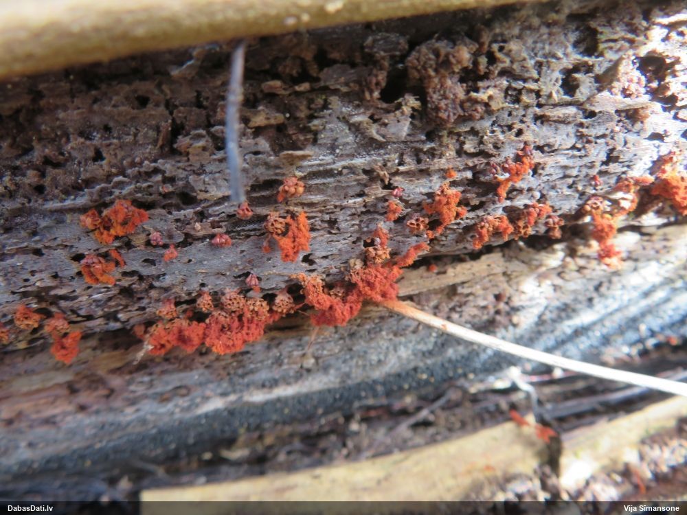Šobrīd divas versijas - Physarum psittacinum un P.braunianum. Bez paraudziņa te skaidrīzā netiks, bet biotops interesants