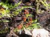 Man pēkšņi radās ideja - vai tur bija nu ļoti mitrs mikroklimats, egle ar melnalksni? Hipotētiski tādas dzeltenas var būt Diachea muscorum. Te bilde ir mazliet līdzīga: https://fr.wikipedia.org/wiki/Fichier:Craterium_muscorum,_Trawscoed,_North_Wales,_Aug_2016_-_Flickr_-_janetgraham84.jpg
