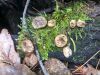 Man pēkšņi radās ideja - vai tur bija nu ļoti mitrs mikroklimats, egle ar melnalksni? Hipotētiski tādas dzeltenas var būt Diachea muscorum. Te bilde ir mazliet līdzīga: https://fr.wikipedia.org/wiki/Fichier:Craterium_muscorum,_Trawscoed,_North_Wales,_Aug_2016_-_Flickr_-_janetgraham84.jpg