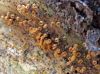 Man pēkšņi radās ideja - vai tur bija nu ļoti mitrs mikroklimats, egle ar melnalksni? Hipotētiski tādas dzeltenas var būt Diachea muscorum. Te bilde ir mazliet līdzīga: https://fr.wikipedia.org/wiki/Fichier:Craterium_muscorum,_Trawscoed,_North_Wales,_Aug_2016_-_Flickr_-_janetgraham84.jpg
