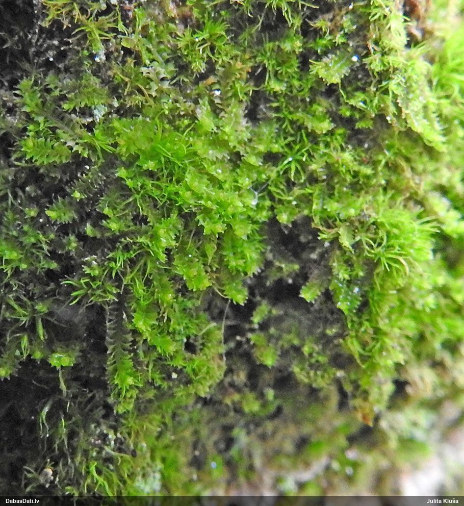 Paldies, Raivo! Ar acu gaišumu man arvien sliktāk, bet mikroskops palīdz. Jā, gribēju teikt, ka paraugam, ja vien nav kāda jutīga atradne, kurai drīkst ievākt tikai mazu gabaliņu, vērts ievākt lielāku gabalu, jo gļotsēnēm patīk kompānija. Un mikroskopa mazajos palielinājumos ar sānu papildus apgaismojumu ir vērts rūpīgi "izstaigāt" visu paraugu. Arī ķērpjus un interesantas sīksēnītes tā var atrast, ko dabā nepamanītu. Ar kriksītēm ir dažādi - pirmās es tā arī tikai citu sugu paraugos pamanīju, bet vēlāk redzēju arī dabā kriskīšu plantācijas - ja to ir daudz, tad var pamanīt jau dabā. Uz sūnām gan ir ekstrēms gadījums, dabā droši nepamanītu, arī eksemplāra noņemšana no sūnas nebija pārāk veiksmīga, tāpēc par noteikšanu mazliet šaubos (sporām mazliet cits tonis). Bet pagaidām citas hipotēzes nav (un konkrētā eksemplāra arī vairs ne).