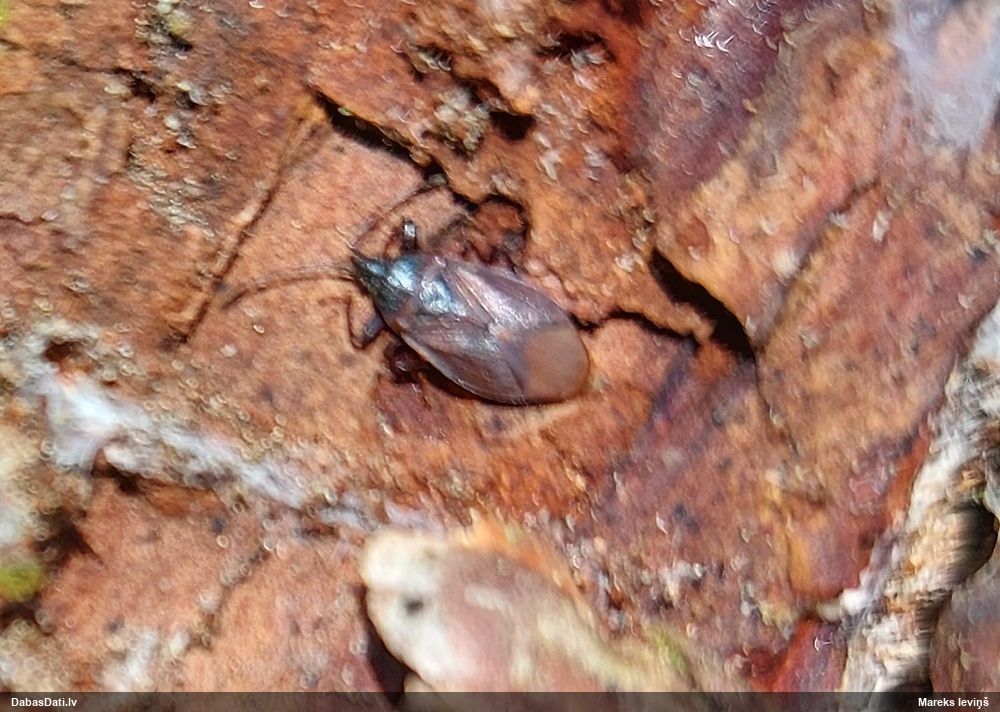 Ja uz beigta koka, tad ticamākā laikam ir B.affinis var. microspora, lai gan tā aug uz mizas. Bet varbūt tieši apakšā gļotsēnēm ir kādi mizas fragmentiņi?