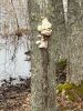 Satrūdējusi kritala mežā, nav dēļi. Iespējams, egle, jauktu koku mežs.