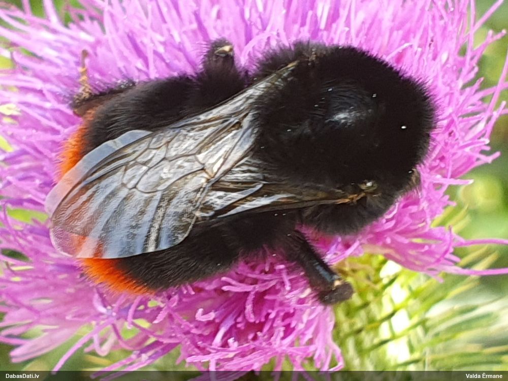 Jāredz tuvāk (kaut vai izkadrēts šis pats attēls) - varbūt tumšā eļļasvabole (Meloe proscarabaeus)