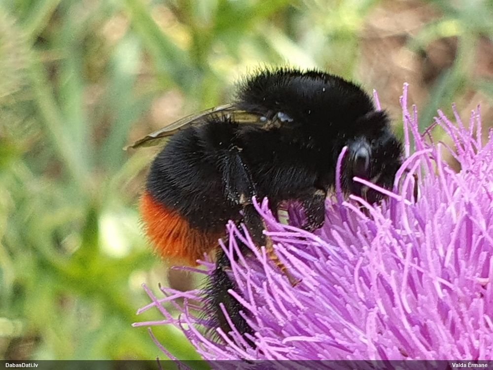 Jāredz tuvāk (kaut vai izkadrēts šis pats attēls) - varbūt tumšā eļļasvabole (Meloe proscarabaeus)