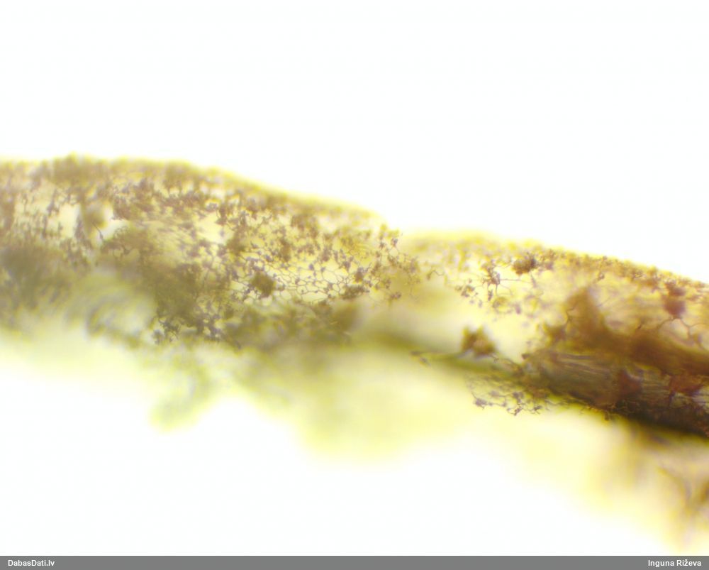 Šis man pašai sanāca pārsteigums. Ievācu paraugu ar domu "varbūt tur ir gļotsēne", dodot varbūtību apmēram pusprocentu, ka ir. Bet no mikroskopijas starp galīgi vecām sporām izdevās atrast ne tikai dažas labas, bet, galvenais, arī perfektus kapilīcija fragmentus, no kura suga, vēl kopā ar sporu pazīmēm, nosakāma nešaubīgi.