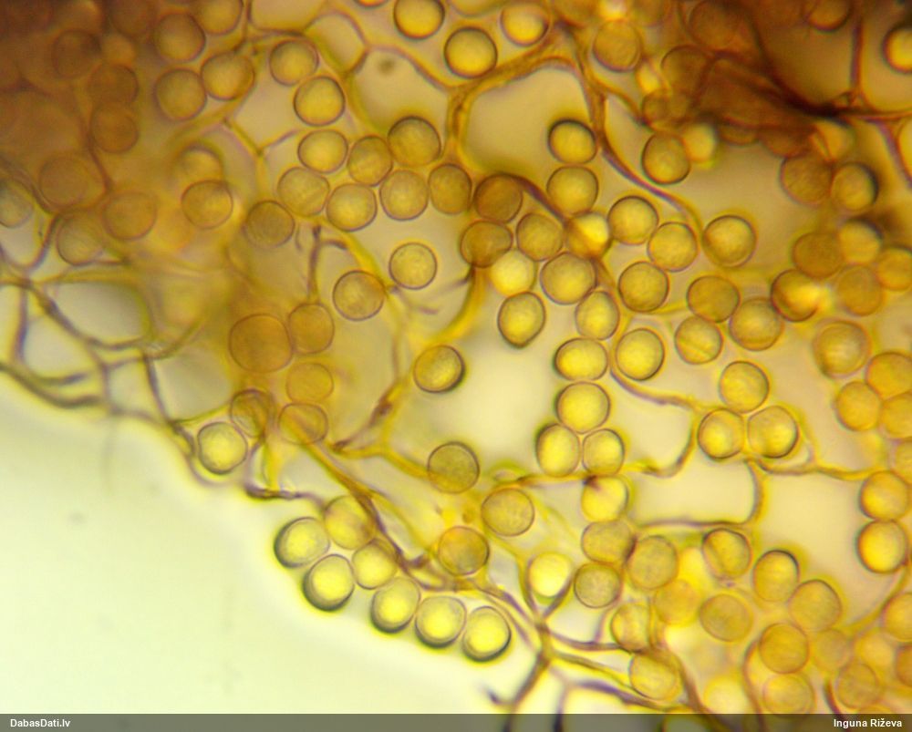 Šis man pašai sanāca pārsteigums. Ievācu paraugu ar domu "varbūt tur ir gļotsēne", dodot varbūtību apmēram pusprocentu, ka ir. Bet no mikroskopijas starp galīgi vecām sporām izdevās atrast ne tikai dažas labas, bet, galvenais, arī perfektus kapilīcija fragmentus, no kura suga, vēl kopā ar sporu pazīmēm, nosakāma nešaubīgi.