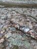 Satrūdējusi kritala mežā, nav dēļi. Iespējams, egle, jauktu koku mežs.