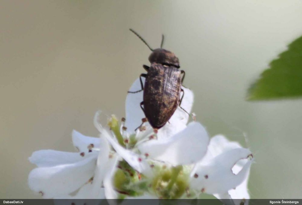 Jāredz tuvāk (kaut vai izkadrēts šis pats attēls) - varbūt tumšā eļļasvabole (Meloe proscarabaeus)