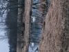 Satrūdējusi kritala mežā, nav dēļi. Iespējams, egle, jauktu koku mežs.