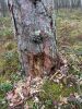 Satrūdējusi kritala mežā, nav dēļi. Iespējams, egle, jauktu koku mežs.