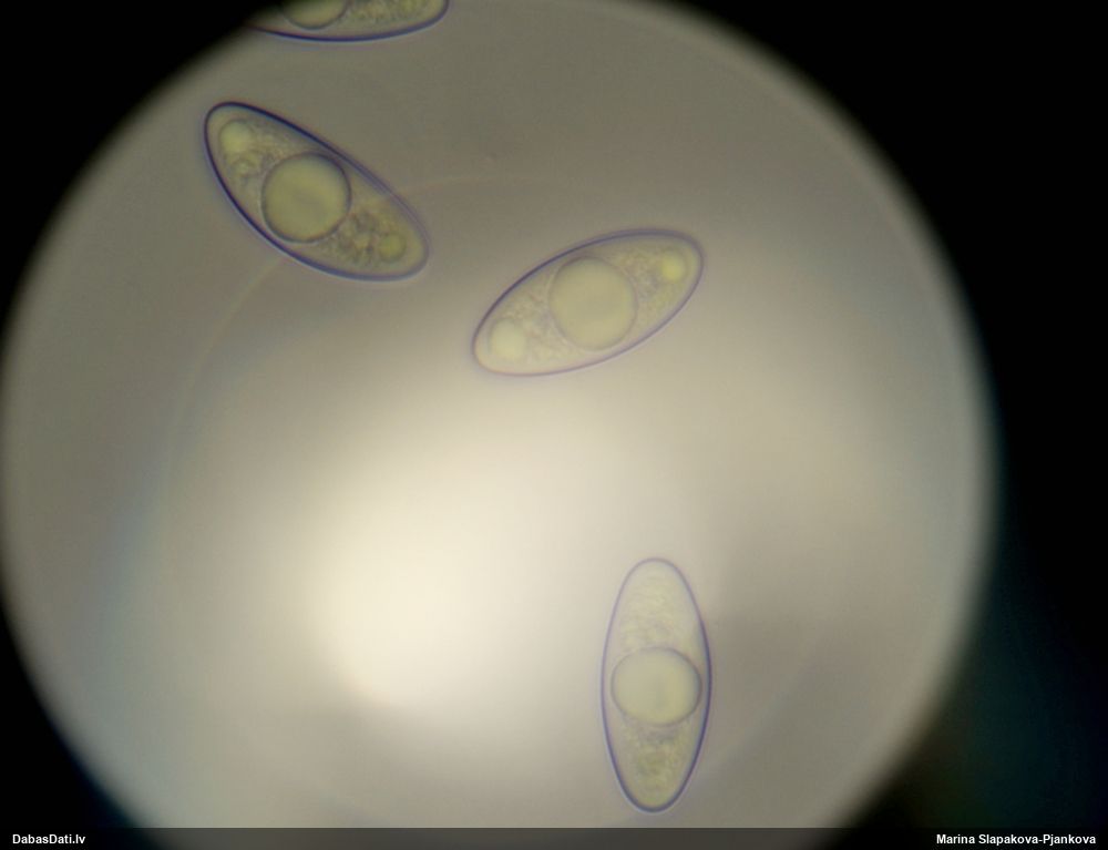 Sporas izskatās ļoti gaišas, varbūt nenobriedušas. Es laikam pēc kāda laiciņa mēģinātu vēlreiz mikroskopēt. Tajā pašā laikā sporu izmēri priekš T.contorta ir pamazi (ja tipiski ir 11-14 mkm, te ir knapi 11 mkm)