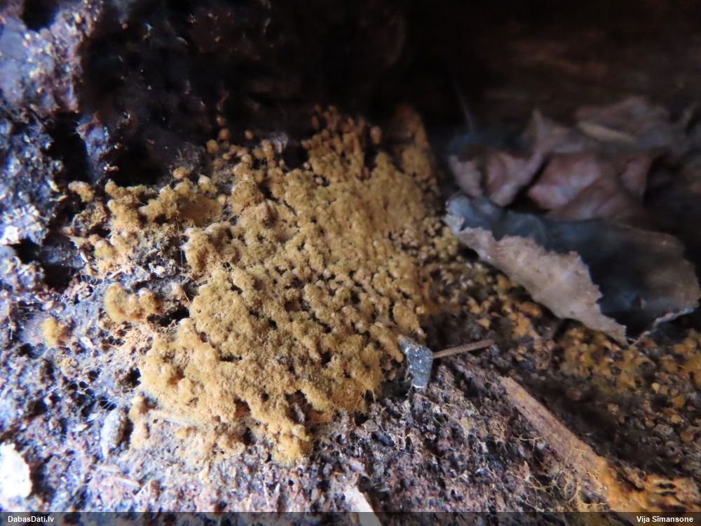Šobrīd divas versijas - Physarum psittacinum un P.braunianum. Bez paraudziņa te skaidrīzā netiks, bet biotops interesants
