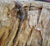 Satrūdējusi kritala mežā, nav dēļi. Iespējams, egle, jauktu koku mežs.