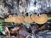 Šobrīd varu iedomāties 2 variantus - melnā plaispika Amaurochaete atra vai parastais gļotpūpēdis Reticularia lycoperdon. Pēc izmēra, augšanas laika un augšanas uz apstrādāta koka atbilst abas.