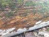 Satrūdējusi kritala mežā, nav dēļi. Iespējams, egle, jauktu koku mežs.