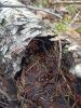Satrūdējusi kritala mežā, nav dēļi. Iespējams, egle, jauktu koku mežs.