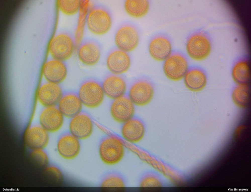 Sporas izskatās ļoti gaišas, varbūt nenobriedušas. Es laikam pēc kāda laiciņa mēģinātu vēlreiz mikroskopēt. Tajā pašā laikā sporu izmēri priekš T.contorta ir pamazi (ja tipiski ir 11-14 mkm, te ir knapi 11 mkm)