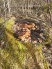 Satrūdējusi kritala mežā, nav dēļi. Iespējams, egle, jauktu koku mežs.