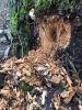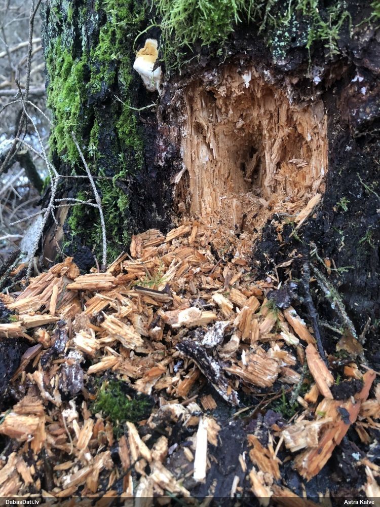 Satrūdējusi kritala mežā, nav dēļi. Iespējams, egle, jauktu koku mežs.