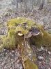 Satrūdējusi kritala mežā, nav dēļi. Iespējams, egle, jauktu koku mežs.