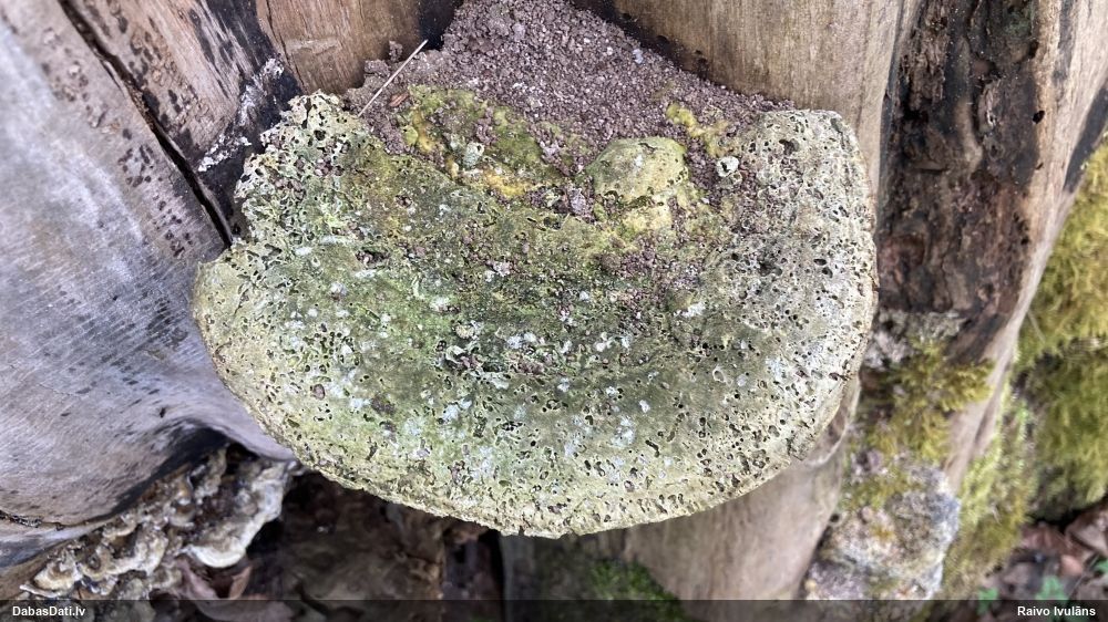 Paldies par paraugu! Paraugā augļķermeņi gan bija ļoti cieti, līdz galam nenobrieduši. Jauna eksemplāra krāsa var būt nozīmīga noteikšanā, bet svarīgi arī nobriedināt (turot mitrākā vietā), citādi perīdiju noņemt mikroskopēšanai ir praktiski neiespējami. Šajā gadījumā mazu gabaliņu izdevās atmiekšķēt un nodabūt, kas sarežģītākos gadījumos varētu būt nepietiekami. Pēc izmēra un perīdija pazīmēm te varētu būt divi varianti L.irregularis un L.epidendrum, kas esot viens no grūtāk atšķiramajiem sugu pāriem. L.epidendrum vairāk raksturīgi, kā es tos saucu, pārstaipi uz augļķermeņa virsmas, kas te ir ļoti labi redzami, tāpēc izšķīros par parastāko sugu.