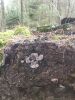 Satrūdējusi kritala mežā, nav dēļi. Iespējams, egle, jauktu koku mežs.