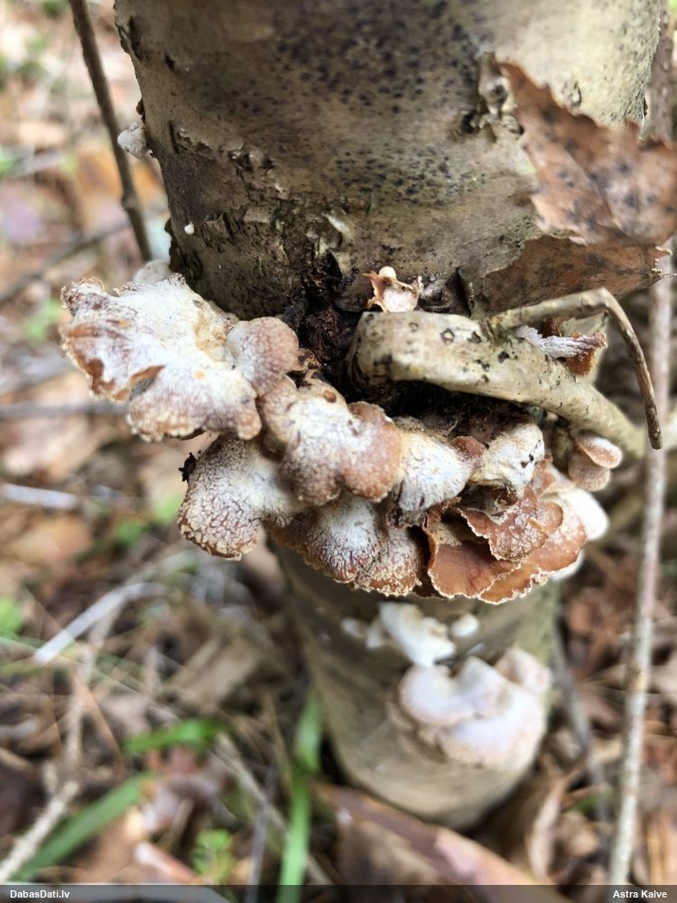 Paldies par paraugu! Paraugā augļķermeņi gan bija ļoti cieti, līdz galam nenobrieduši. Jauna eksemplāra krāsa var būt nozīmīga noteikšanā, bet svarīgi arī nobriedināt (turot mitrākā vietā), citādi perīdiju noņemt mikroskopēšanai ir praktiski neiespējami. Šajā gadījumā mazu gabaliņu izdevās atmiekšķēt un nodabūt, kas sarežģītākos gadījumos varētu būt nepietiekami. Pēc izmēra un perīdija pazīmēm te varētu būt divi varianti L.irregularis un L.epidendrum, kas esot viens no grūtāk atšķiramajiem sugu pāriem. L.epidendrum vairāk raksturīgi, kā es tos saucu, pārstaipi uz augļķermeņa virsmas, kas te ir ļoti labi redzami, tāpēc izšķīros par parastāko sugu.